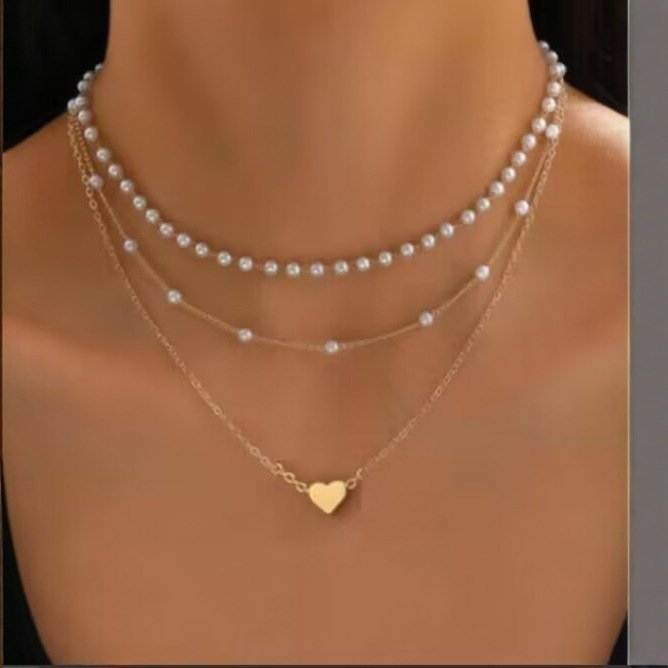 Color: GN faux pearl bow necklace, GN faux pearl heart necklace, GN faux pearl metal strip necklace, GN faux pearl necklace
