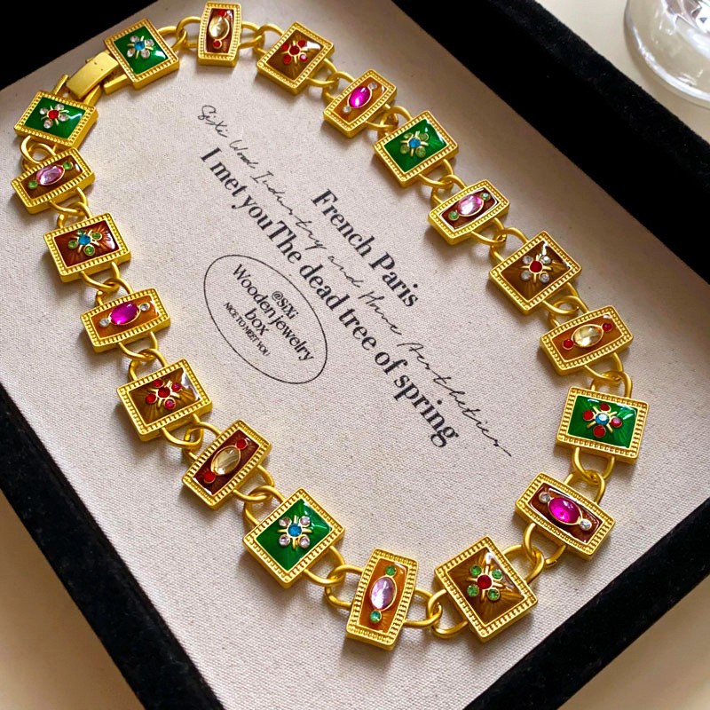 Geometric Artificial Pearl Double Layered Collarbone Chain Necklace