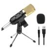 Reverb microphone: equipped with dual-row microphone cable, USB socket with power supply function, plug and play, microphone with volume adjustment and reverb