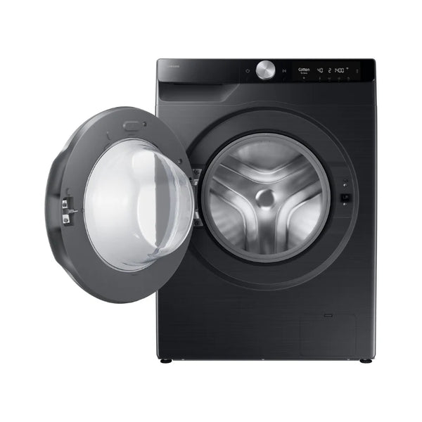 AI 9KG Front Loader, with AI Ecobubble – Smart energy savingsSmartThings AI Energy modeMonitor and reduce the washer’s energy use. AI Energy mode* lets you check the power consumption and estimates your electricity bill. For courses that operate in AI Energy mode** it reduces energy use by up to 70%*** using Ecobubble™ to wash with cool water instead of warm and extra cycle time.Wash for lessA-10% Extra Energy EfficiencyWash clothes using less energy. The Samsung washing machine is highly energy efficient and even exceeds the minimum energy efficiency requirements for the Class A rating by up to 10%*. Advanced technologies enhance the washing performance and reduce the wash time, which reduces its energy use.Smart, gentle washingAI Ecobubble™Enjoy effective washing with AI Ecobubble™*. It creates bubbles that remove 24% more soil** even in cool water. It also detects the fabric type and adjusts the amount of bubbles, washing time, temperature and spin speed. So it saves up to 70% energy*** compared to washing in warm water and ensures 45.5% better fabric care****.Wash in 39 minutesSuper SpeedCut your daily laundry time and get clothes thoroughly clean. Use Super Speed to wash a load in just 39 minutes – QuickDrive ™ saves time by moving clothes dynamically, while Ecobubble™ ensures powerful cleaning. The rinsing time is shortened using Speed Spray and it accelerated the spin speed.Specificationsashing Capacity (kg)9.0 kgBubble technologyBubble technologyNet Dimension (W x H x D)600 x 850 x 595 mmNet Weight65 kgWashing CapacityWashing Capacity (kg)9.0 kgDesignBody colorBlackDoorBlack + D.Silver DecoPanel DisplayAI ControlFeatureAI ControlYesAI WashYesAI EcoBubbleYesAI Energy ModeYesQuickDriveNoAuto DispenseYesBubble SoakYesBubble technologyYesChild LockYesDelay EndYesDrum Clean+YesDrum type2nd DiamondIntensiveYesLanguage SettingYesMotorDITMy CycleYesPre WashYesSmart ControlYesSmart ThingsYesSpin Speed1400 rpmStayClean DrawerYesSteamYesSuper SpeedYesCycleAI WashYesSuper SpeedYesQuick Wash 15’YesActive WearYesBaby CareYesBeddingYesCloudy DayYesCottonYesColorsYesDelicatesYesDenimYesDrain/SpinYesDrum Clean+YesE CottonYesHygiene SteamYesLess MicrofiberYesMixed LoadYesOutdoorYesRinse + SpinYesShirtsYesSilent WashYesSyntheticsYesTowelsYesWoolYesPhysical specificationNet Dimension (W x H x D)600 x 850 x 595 mmNet Weight65 kgGross Dimension (W x H x D)670 x 890 x 660 mmGross Weight67 kgSmartWiFi EmbeddedYesApp ConnectivitySmartThings App SupportYes