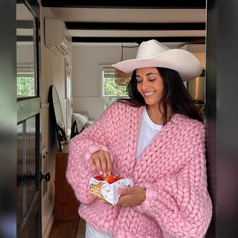 I contacted the seller and switched to a pink sweater.This is a very comfortable knitted cardigan. I really like it. I recommend you to buy it. Much thicker than expected, comfortable, and the sweater is loose and soft. I love the AliExpress platform and like it! ! !