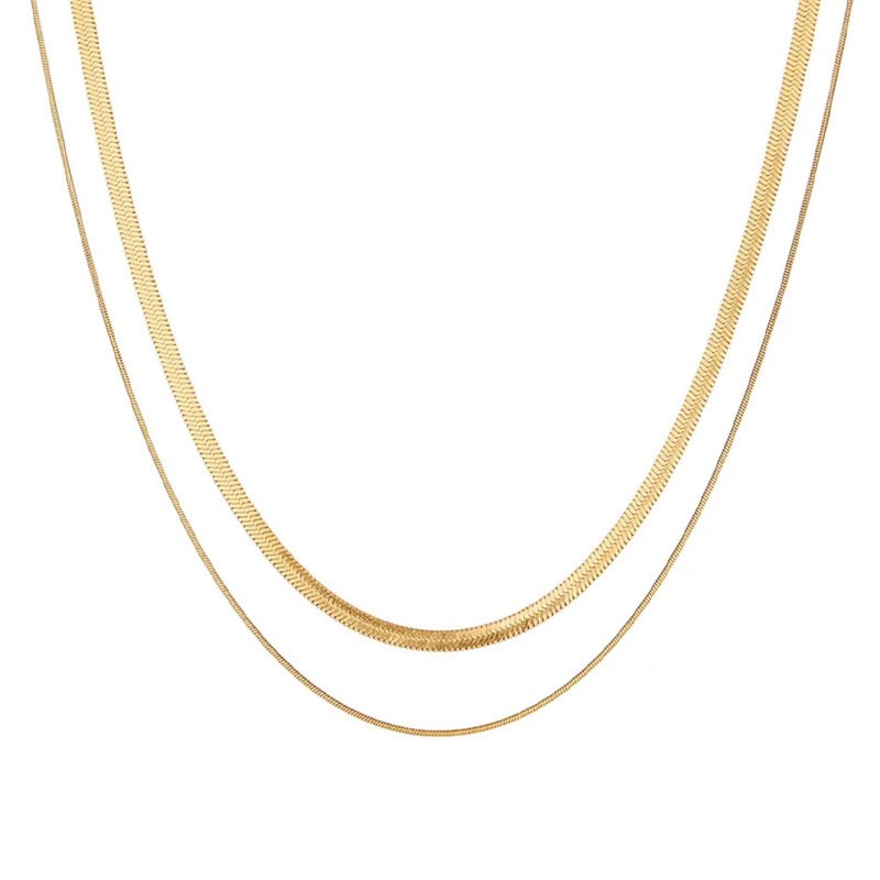 Colors: Three-Tier Stacked Snake Chain Necklace [Gold], Three-Tier Stacked Snake Chain Necklace [Silver], Two-Tier Stacked Snake Chain Necklace [Gold], Two-Tier Stacked Snake Chain Necklace [Silver]